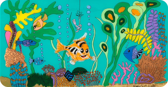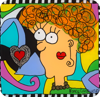 She has created dozens of reverse-style paintings on Lucite, a technique that dates back thousands of years. Her love of animation motivated her to duplicate this age-old technique that was popularized in 1937 with Disney’s Snow White and the Seven Dwarfs. This technique remained the standard in animation for the next 63+ years. Nancy’s art style is a tip-of-the-hat to the industry that has given her so much.